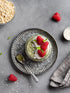 Ingredients: Organic yogurt, matcha, raspberries, cream cheese, organic chia, organic GF oat milk, organic GF oats, vanilla, salt, maple syrup, lemon, gluten free graham. 250ml